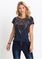 Plats apaļais kakla izgriezums. Īsas piedurknes. Folijas uzdruka priekšā. Garums apm. 70 cm (izm. 40/42). No 100% viskozes.
