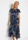 tumši zilā krāsā ar ziediem