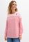 kristāliski rozā / zemeņu sarkanā krāsā ar svītrām